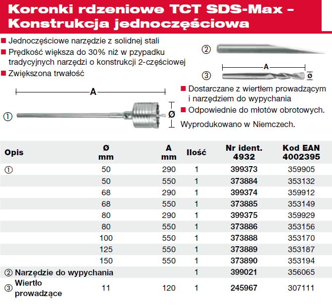 Narzędzie do wypychania koronek rdzeniowych Milw. 4932399021