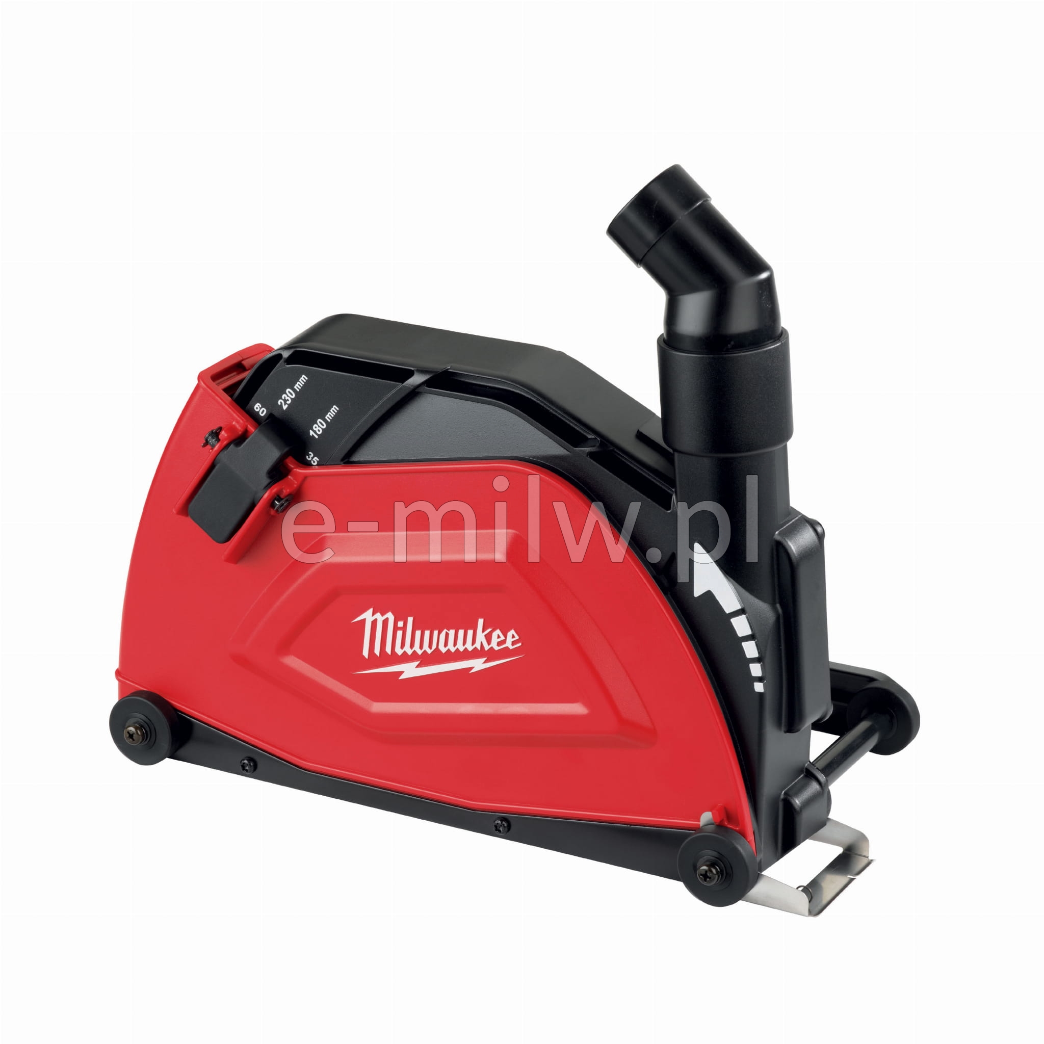 Osłona przeciwpyłowa do umożliwiająca prostopadłe cięcie. Psuje do szlifierek Milwaukee 180 i 230 mm z serii AGV 22, AGVK 24, AG 21, AG 24.