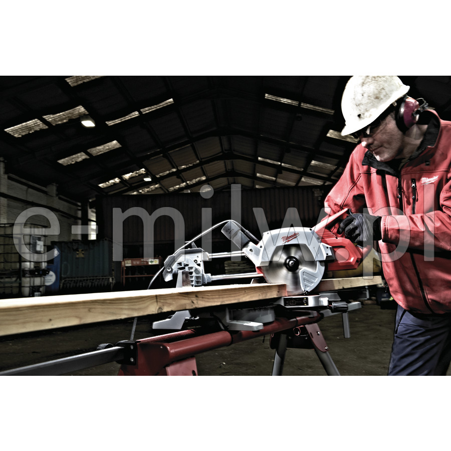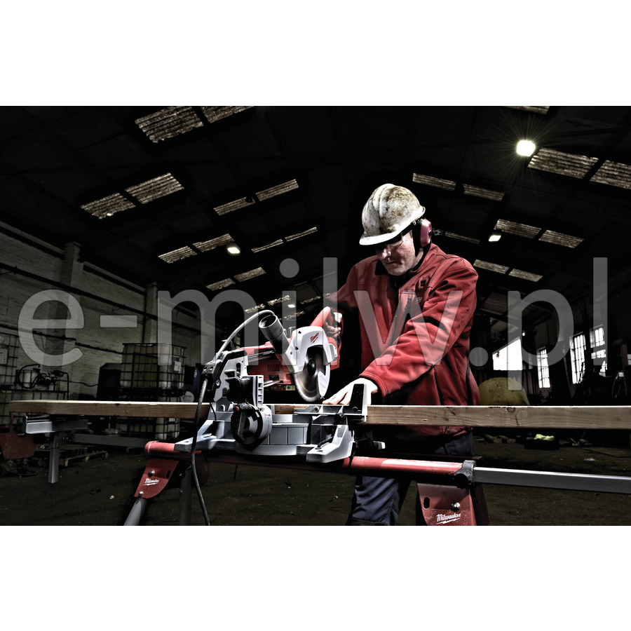 Blokada posuwu – głowica piły automatycznie jest blokowana w tylnej pozycji.