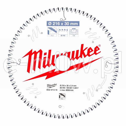 Tarcza do aluminium 216x2.4x30mm 80 zębów Milw. 4932471319