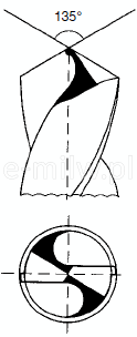Końcówka wiertła ukształtowana zgodnie z DIN 1412 C o kącie wierzchołkowym 135° zapewnia lepsze centrowanie.